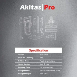 Main power head with agitating roller brush lifts carpet fibres to remove dirt, dust, debris, and hair. Hard floor soft brush roller picks up fine dust, hair, and larger debris. 2 long life batteries inlduded with 116 mins run time Dust sensor automatically controls the suction power level. H13 HEPA filter traps 99.97% of dust particles