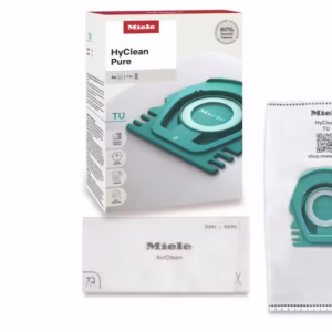 HyClean Pure FJM vacuum cleaner bag Miele AirClean system delivers the best in filtration performance at 99.99 %. Exceptional service life thanks to patented 3D airflow guides 80 % recycled material and ultimate performance – unrivalled on the market Clean bag replacement thanks to automatic bag closure Highest level of efficiency when vacuuming at a low power level Contents: 4 dustbags, 1 motor protection,…