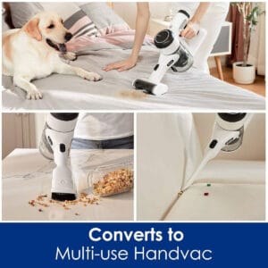The advanced five-layer filtration system captures fine dust and particles and keeps them away from the air with a filtration efficiency of up to 99.9%. The advanced multi-cone dust collector filters dust from the air, ensuring dust goes into the dust cup where it can be dumped with the push of a button.
