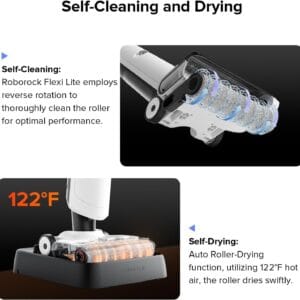 - Warm Air Drying: Dries the mops and dock base completely with 45℃ of warm air, preventing the growth of mold and unpleasant odors.