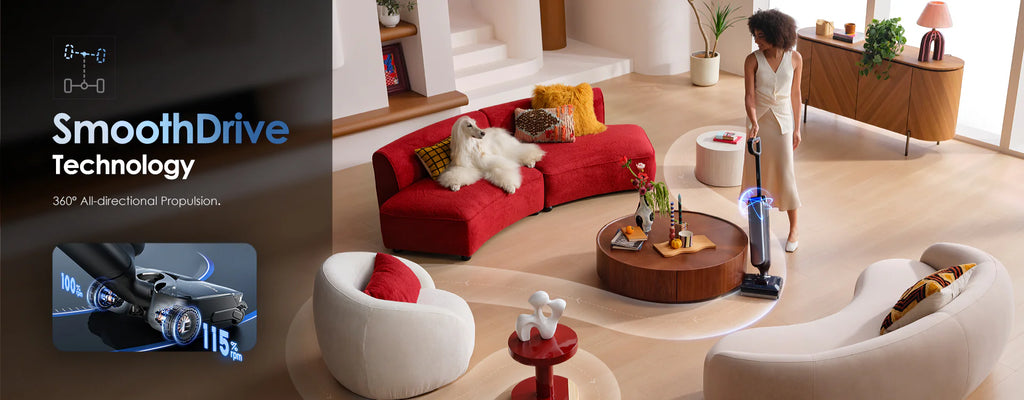 Compresses to just 12.85cm, gliding effortlessly under beds, sofas, and low-clearance areas, ensuring no dust or hair is left behind. - Flashdry Self-Cleaning System